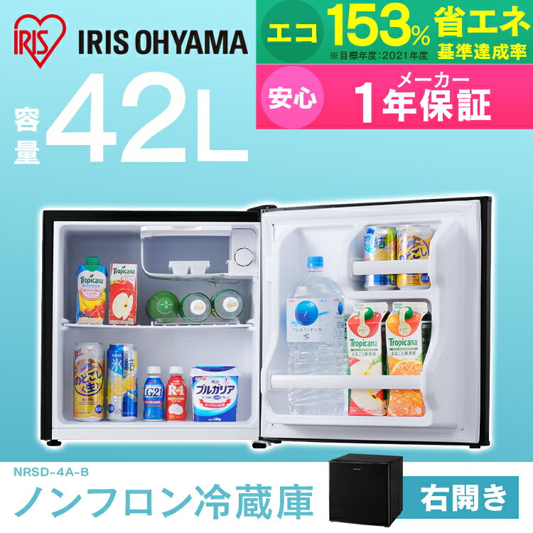 ■種類ノンフロン冷蔵庫■商品サイズ(cm)幅約48.0x奥行約44.5x高さ約50.0■質量約13kg■定格内容積42L■電源電圧AC100V■電源周波数50/60Hz■定格消費電力50Hz:58W60Hz:60W■電源コード長さ1.55m■冷蔵室ドア開閉タイプ右開きタイプ■付属品製氷皿、露受けトレー※冷却庫内は製氷エリアです。